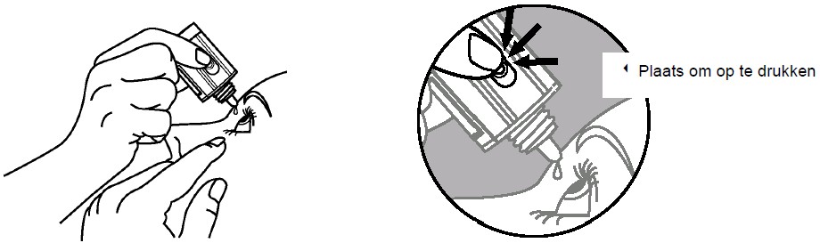 Hoe oogdruppels of-zalven toedienen?1. Was uw handen zorgvuldig met water en zeep en droog ze goed af. 2. Controleer of de vervaldatum van uw oogdruppels of zalf nog niet verstreken is.3. Indien je een oogsuspensie moet gebruiken is het belangrijk het flesje goed te schudden voor gebruik! Zo verspreid het geneesmiddel zich gelijkmatig in het flesje (je apotheker zal je hier ook attent op maken).4. Doe het dopje van de tube of het flesje.5. Raak het puntje van de tube of het flesje niet aan met je vingers.6. Trek het onderste ooglid met duim en wijsvinger zachtjes naar beneden terwijl je naar boven kijkt, zonder het oog of de wimpers aan te raken. Ga, als je dit gemakkelijker vindt, voor een spiegel staan of op een stoel zitten.7. Laat één druppel in het oog vallen (dit is voldoende). Voor oogzalven is dit ongeveer 1 cm zalf. Het flesje of de tube mag niet in aanraking komen met het oog om besmetting te voorkomen.8. Sluit het oog ( niet dichtknijpen) gedurende 1 tot 2 minuten. Druk tegelijkertijd met je vinger op de binnenhoek van het oog zodat het geneesmiddel zo lang mogelijk in contact blijft met het oog.9. Sluit onmiddellijk na gebruik het flesje of de tube. Als je meerdere druppels moet inbrengen, wacht dan 10 minuten met de volgende oogdruppel aan te brengen. Moet je zalf en druppels gebruiken, gebruik dan altijd eerst de druppels en daarna de zalf.10. Volg steeds het advies van de arts en respecteer de voorgeschreven dosis en behandelingsduur.Wat als je de druppels/zalf bent vergeten te gebruiken?Dien de druppels of de zalf alsnog toe, tenzij het bijna tijd is voor een volgende toediening. Gebruik nooit een dubbele dosis om de vergeten dosis in te halen.